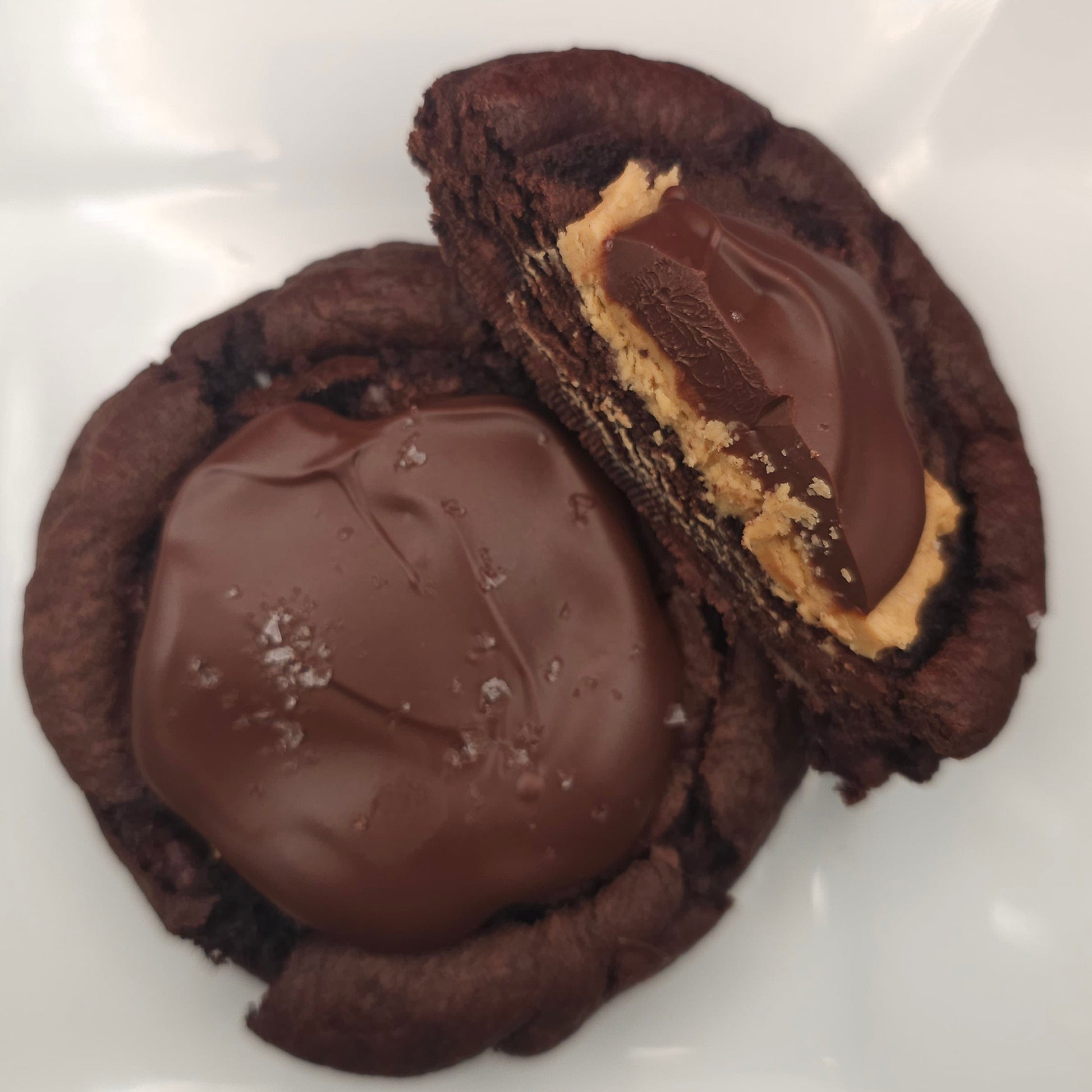 The classic peanut butter buckeye reimagined in a soft cookie, topped with rich dark chocolate.