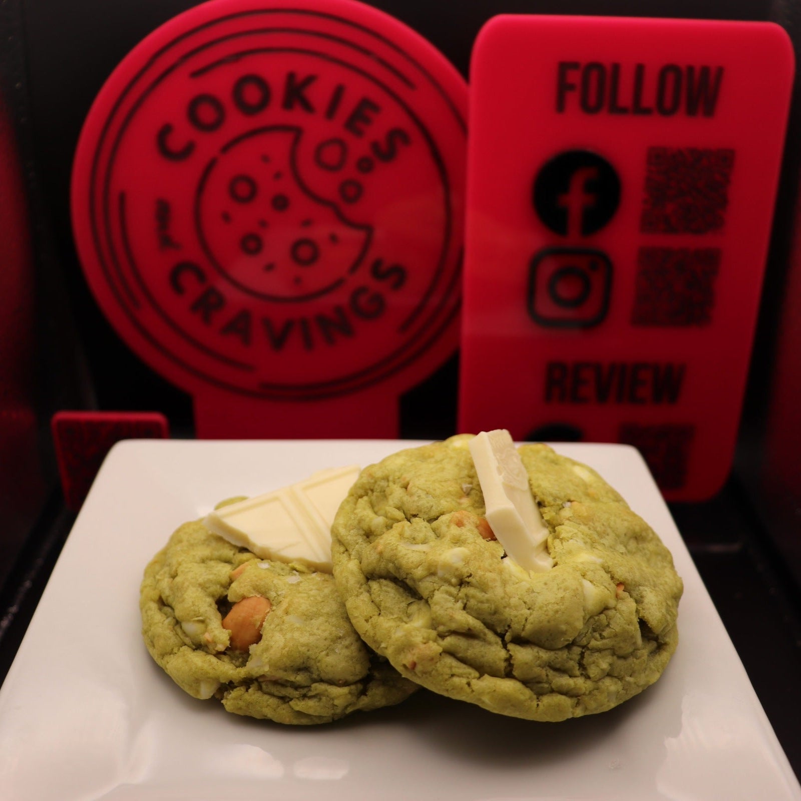 A Filipino classic in cookie form! Chewy Pandan - infused dough with desiccated coconut, roasted cashews, and white chocolate chips